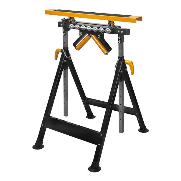 - Robuste et modulable, avec 4 fonctions différentes : peut-être utilisé comme un établi conventionnel, comme servante à rouleaux ou a billes ou en V, avec hauteur réglable du support