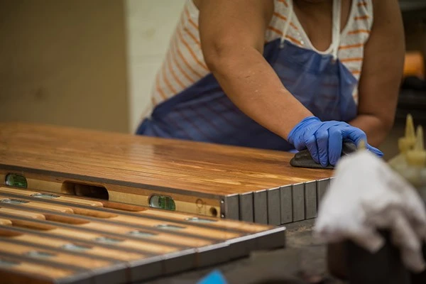 - (5) Des bois durs lamellés et sélectionnés pour leurs propriétés, à la fois solides et souples.