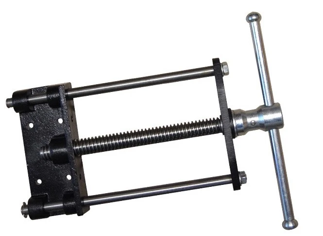 Les mors en fonte sont mis en mouvement par une vis en acier laminé à filetage trapézoïdale (Ø 24 ou 28 mm, pas de 5 mm) et 2 axes de guidages qui assurent un serrage très puissant, fluide, sans à-coups , et parfaitement parallèle.