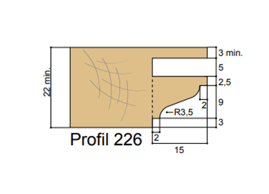- Profil doucine à carré 9x15xHt14 mm.
