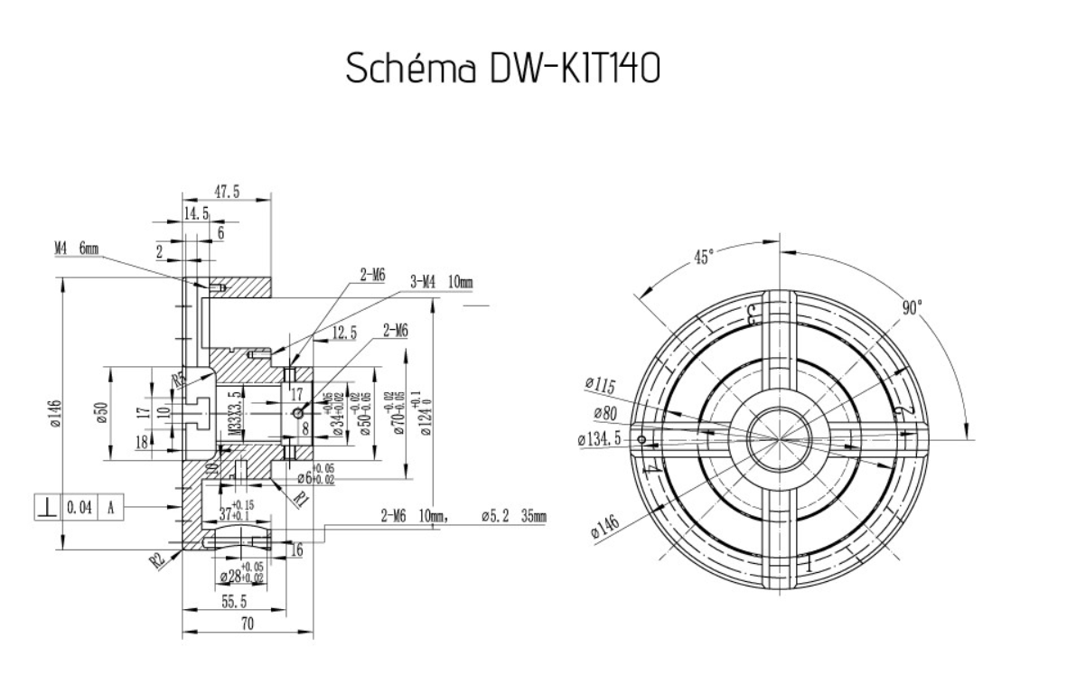 - 1 mandrin de 4 mors Ø140mm filetage M33