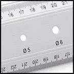 Le système de double graduation différenciée, une commençant à l’extrémité de la règle, l’autre débutant à partir du centre de la règle permet de réaliser aisément des tracés symétriques et précis.