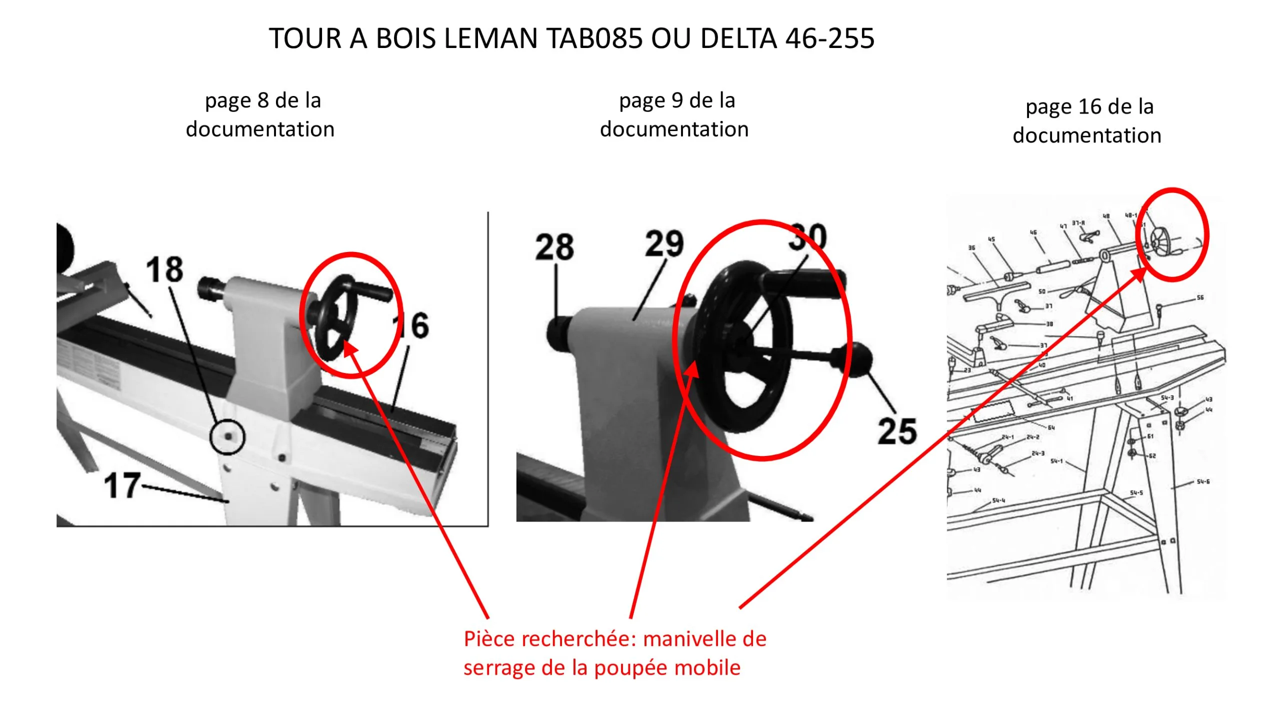 LEMAN – Volant De Réglage En Plastique De La Contre-pointe Pour TAB085
