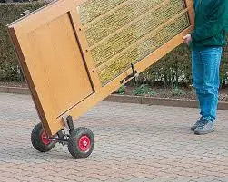 - Support à roulettes très pratique, permettant à une seule personne de porter et de déplacer toutes sortes de panneaux, portes lourdes, charpentes en bois, PVC, aluminium, etc.